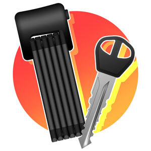 Faltschlösser vereinen Handlichkeit mit Sicherheit: Sie schützen besser als Kabelschlösser, kommen aber nicht an die besten Bügelschlösser heran. Dank ihrer kompakten Maße sind sie einfach zu transportieren. Im gefalteten Zustand ähneln sie einem Zollstock. Dadurch passen die Schlösser problemlos in die Tasche oder an den Rahmen des Fahrrads. Die Faltbarkeit dieser Schlossart ist den Gelenken zu verdanken, welche die starren und flachen Glieder miteinander verbinden. An einem Ende befindet sich ein Gehäuse, in dem Schließzylinder und -mechanismus integriert sind. Je nach Modell handelt es sich um eine Konstruktion mit Schlüssel oder Zahlencode.